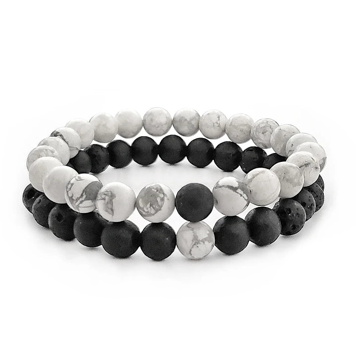 Pulseras de la Distancia para Parejas Piedras Howlita y Volcánica